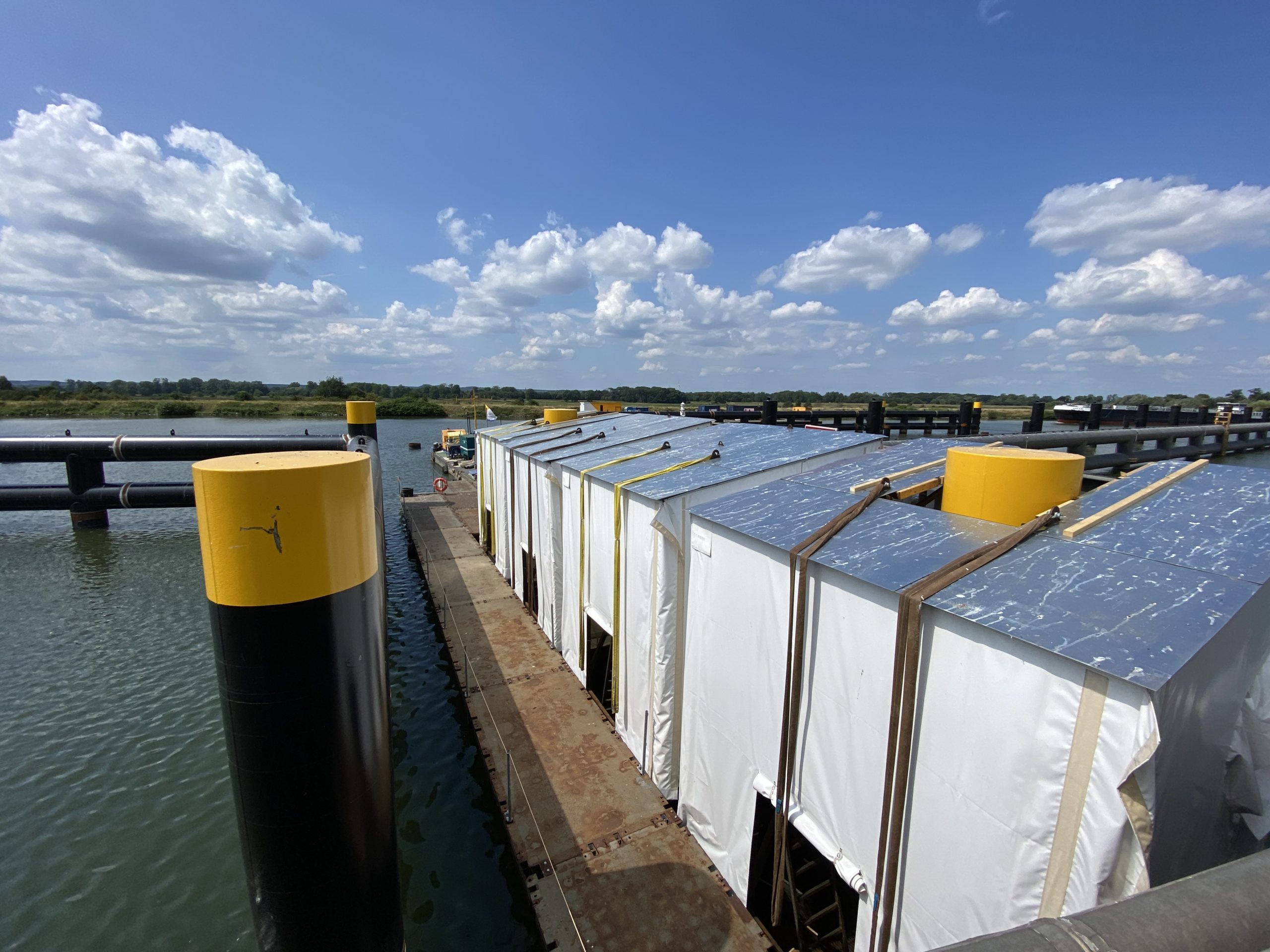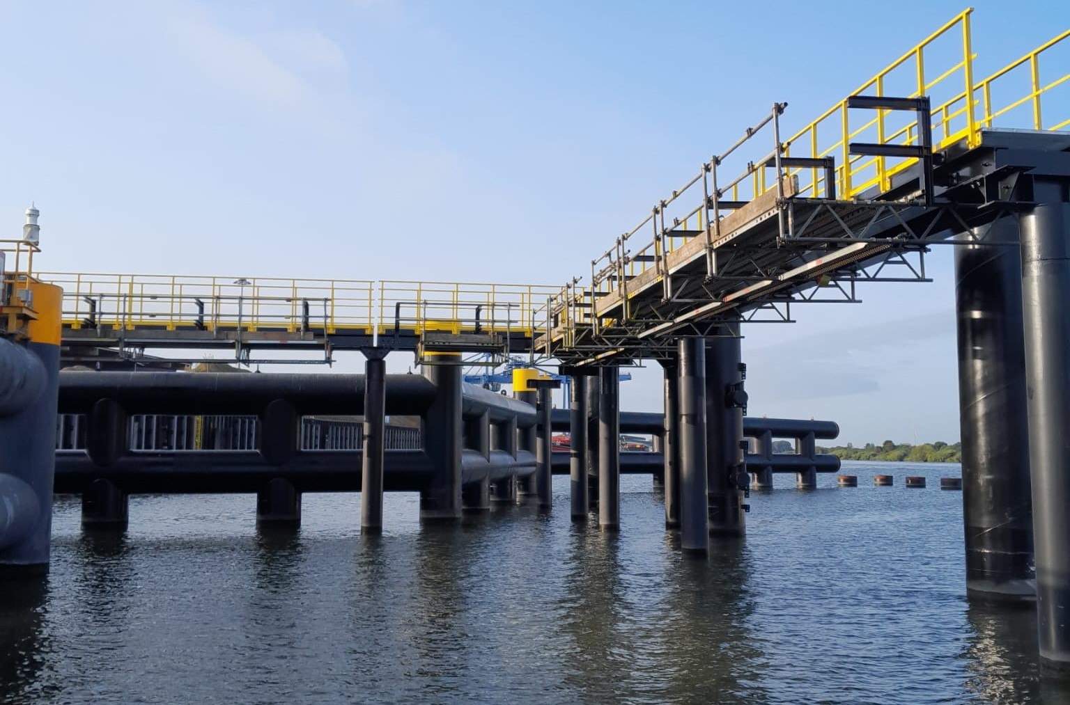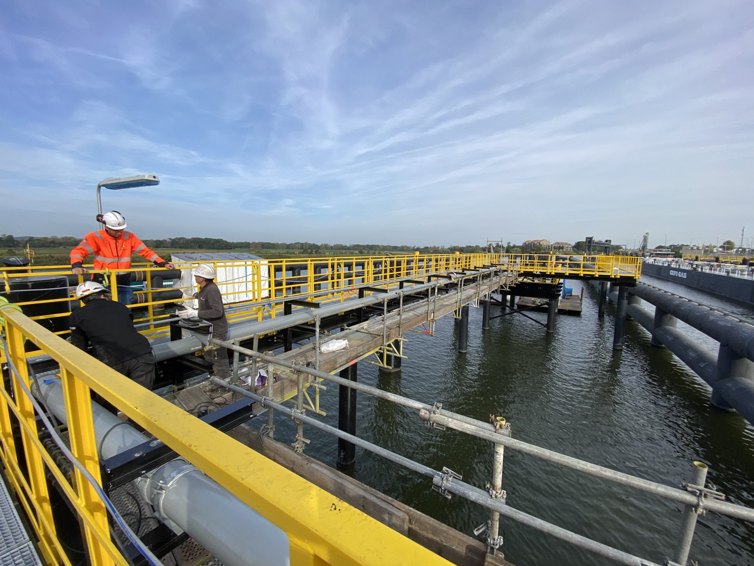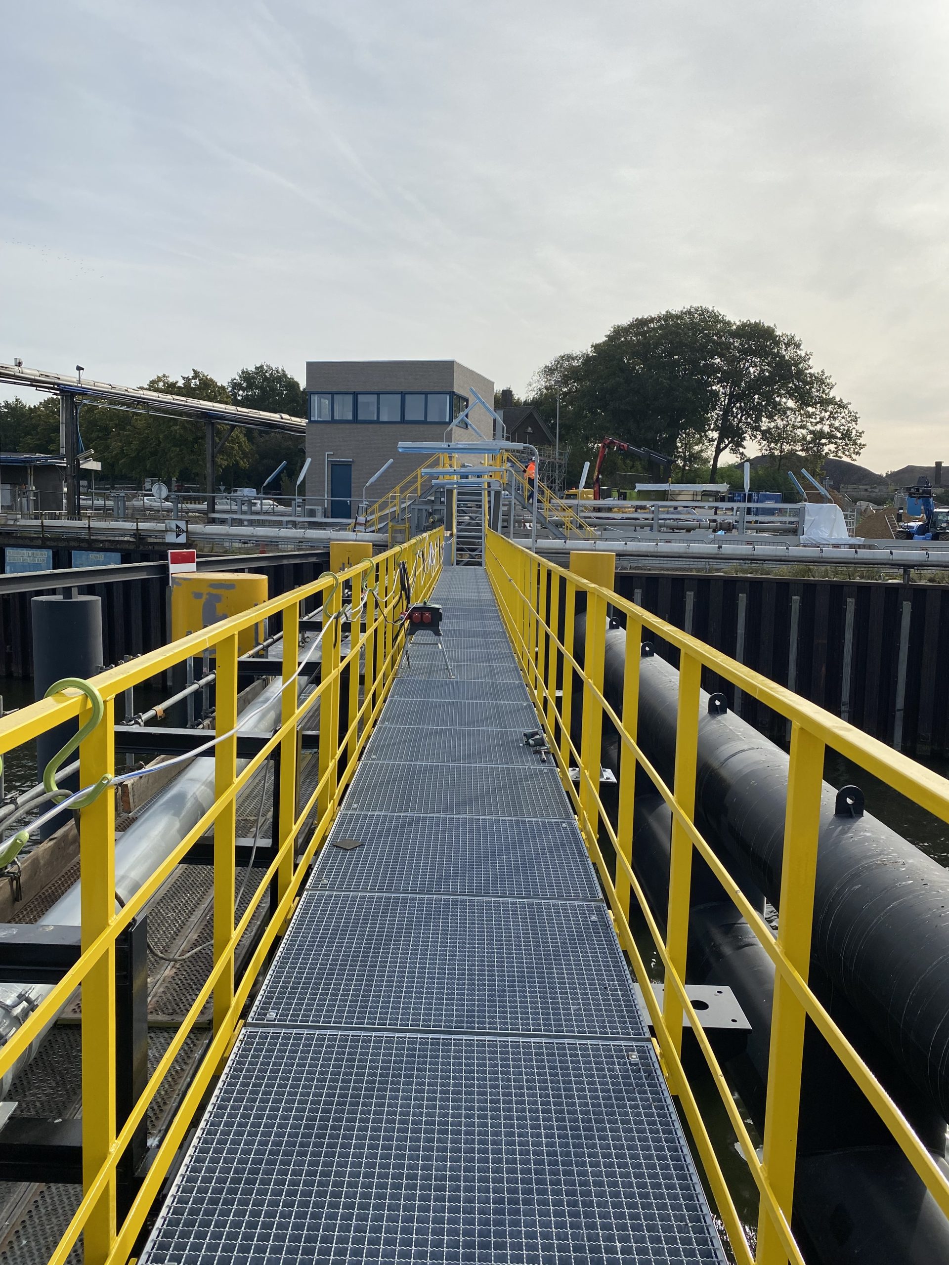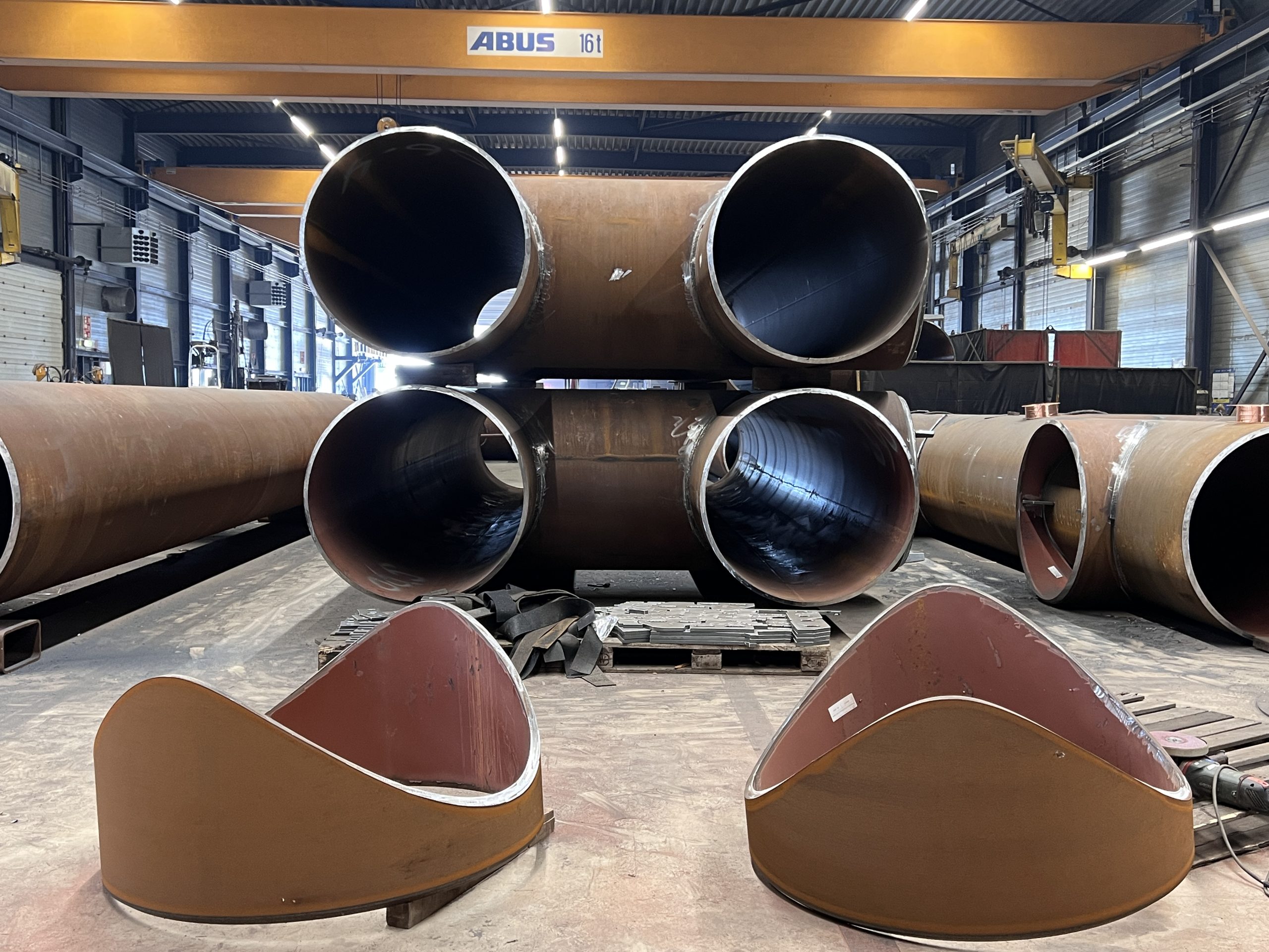 In 2023, we constructed extensive crash barrier for the new propylene loading port in the Juliana Canal in Limburg, including platform and deck structures. Construction in our halls took approximately five months; assembly on the piles installed by our customer took approximately eight months.