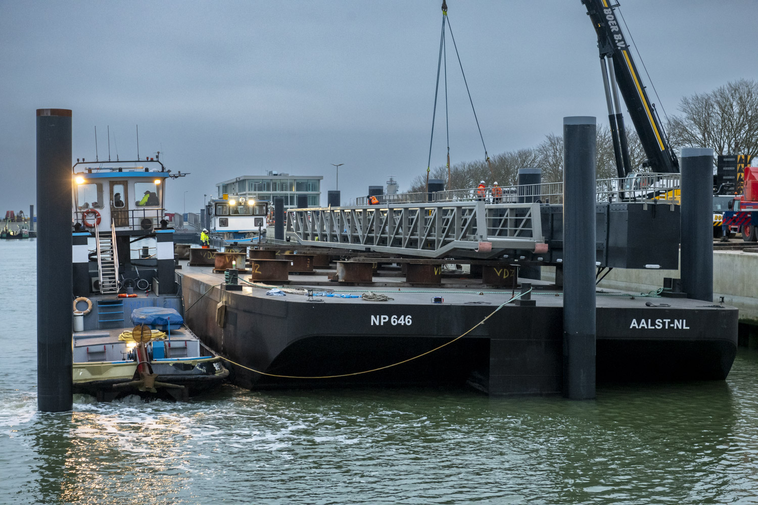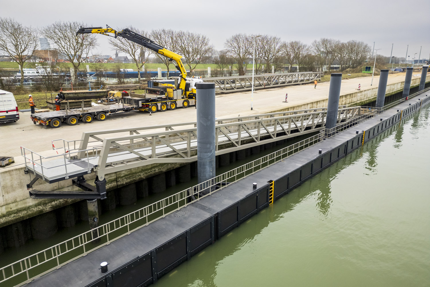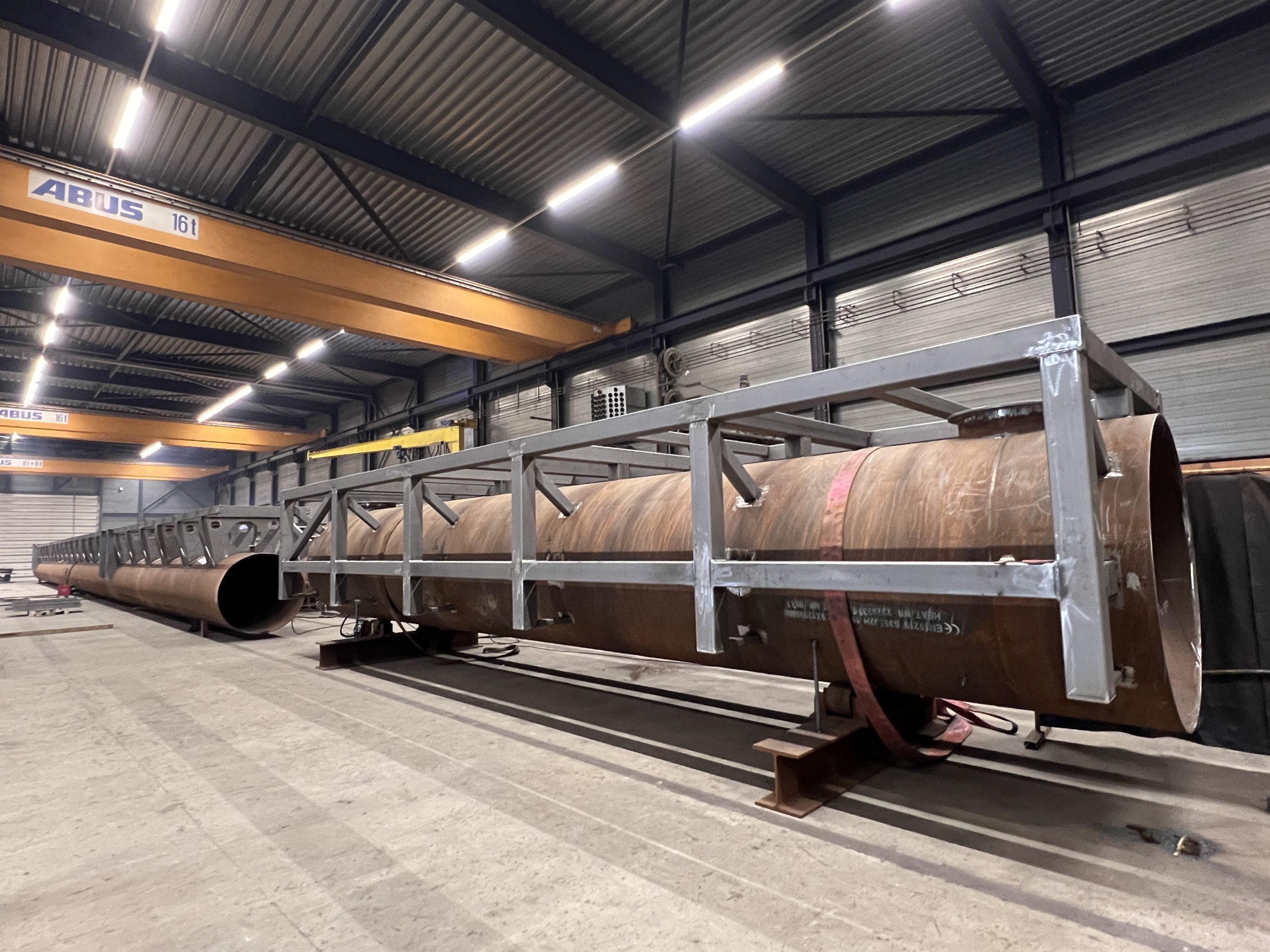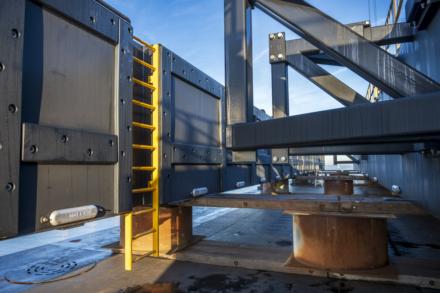 Voor de toegang tot de steigers zijn drie indrukwekkende loopbruggen van elk 46 meter lang geproduceerd – uitzonderlijk vanwege hun lengte.