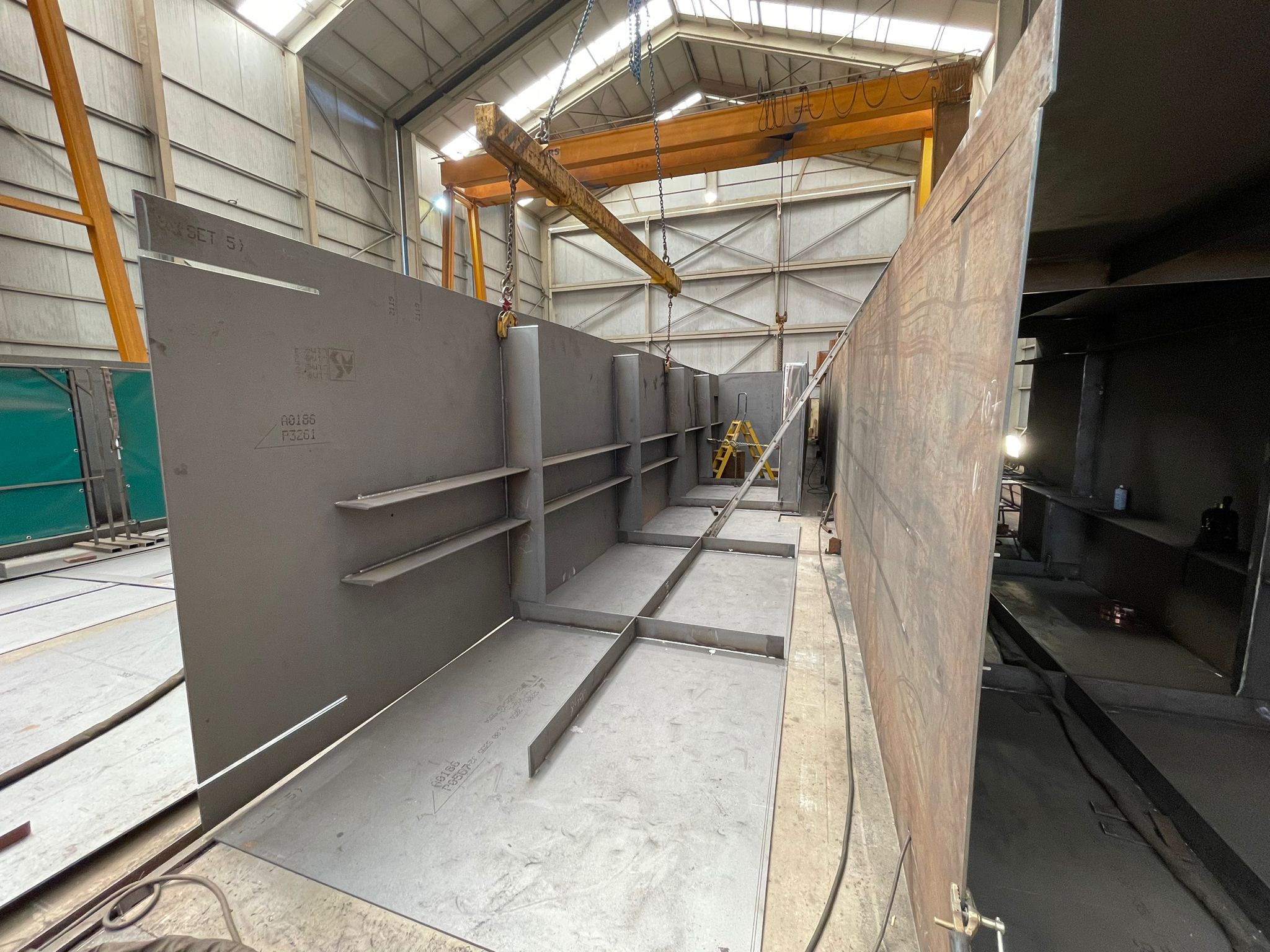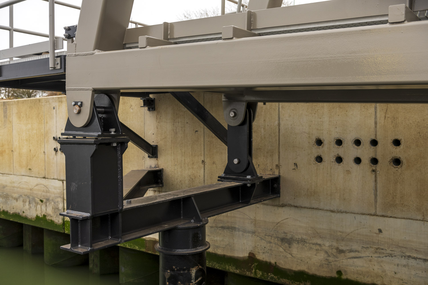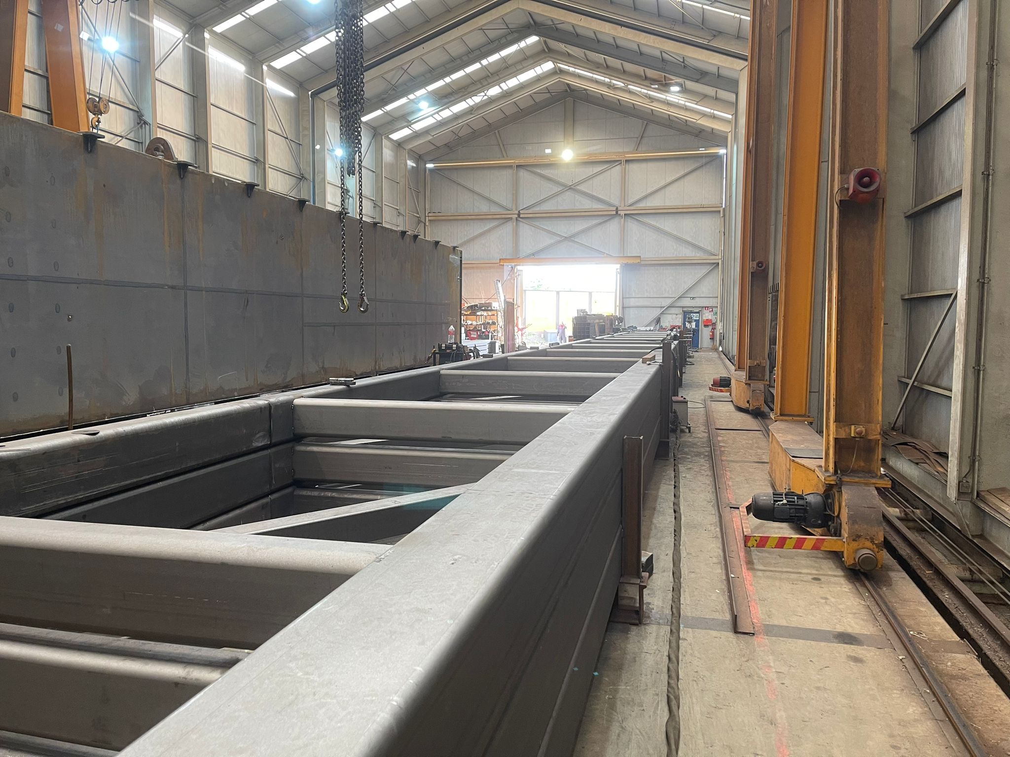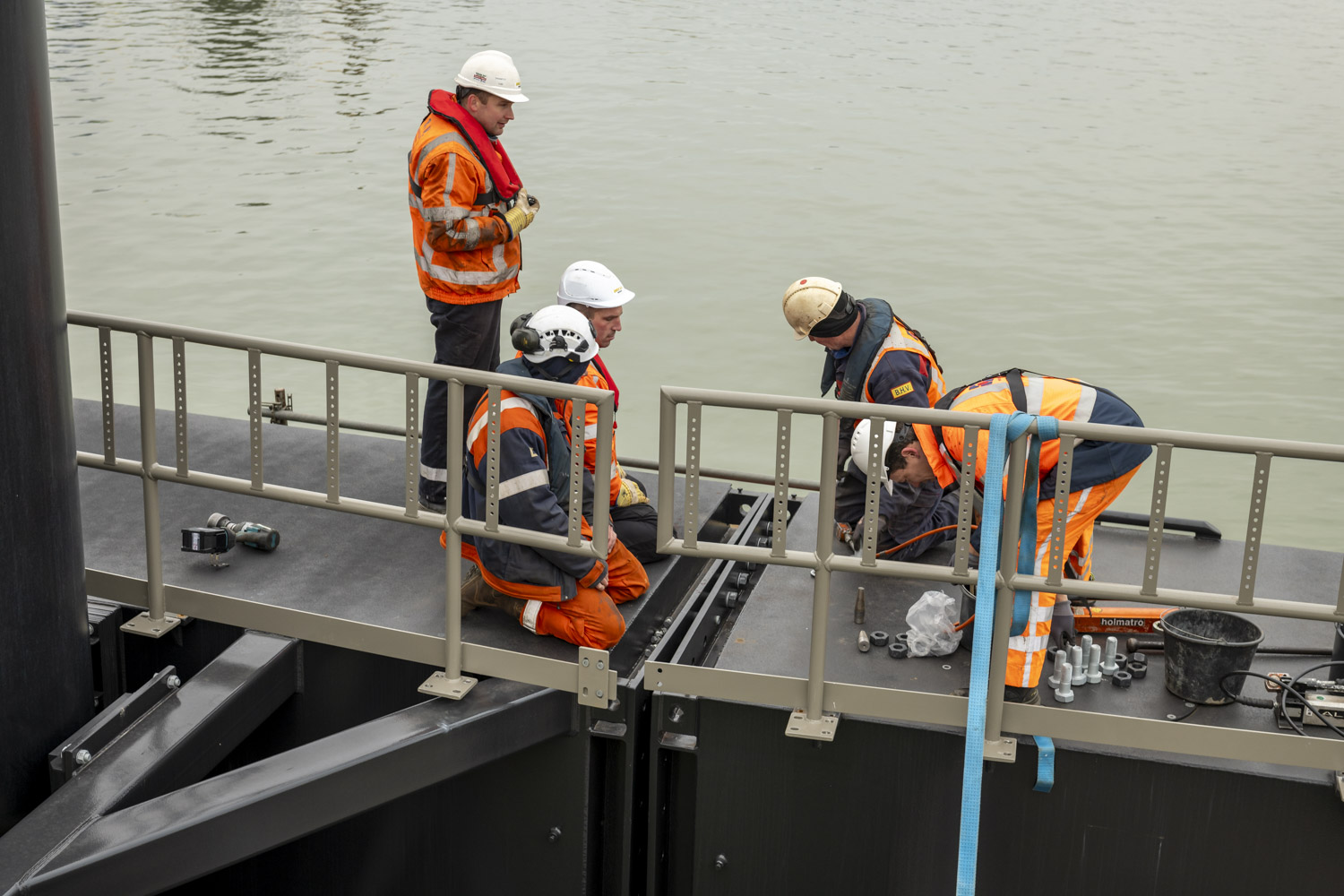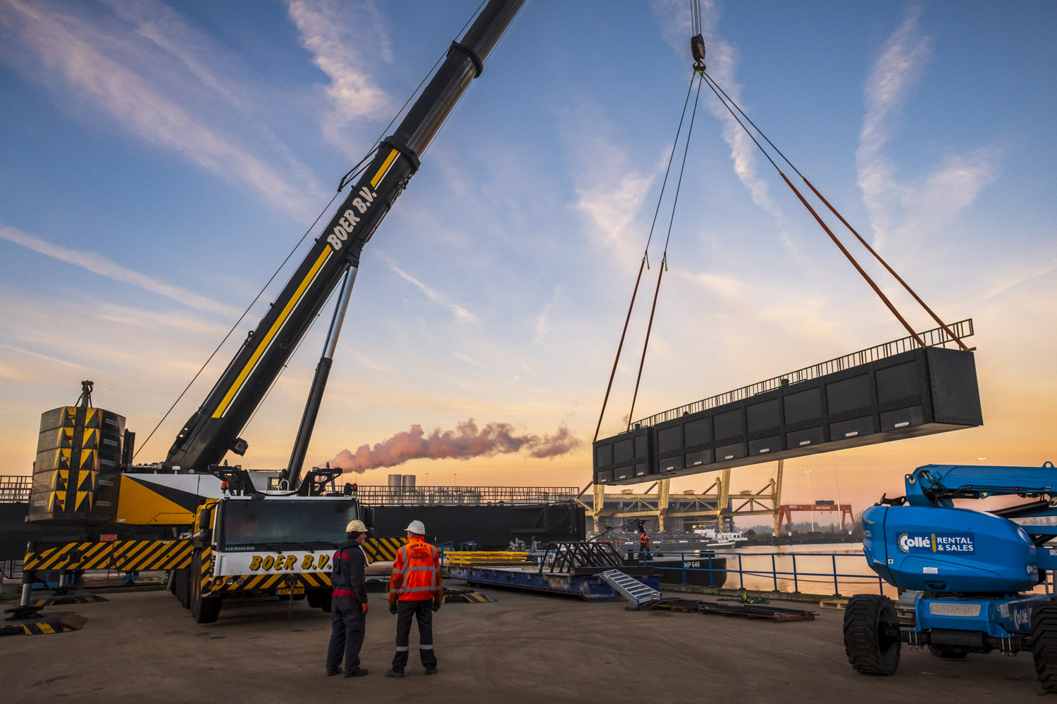 Voor de toegang tot de steigers zijn drie indrukwekkende loopbruggen van elk 46 meter lang geproduceerd – uitzonderlijk vanwege hun lengte.